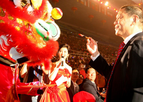 2009年9月,陳江和在北京市政府舉辦的“水立方”捐建答謝晚會上為舞獅點睛