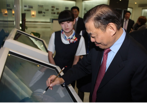 陳江和在“水立方”捐贈紀念廳簽名