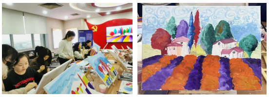 據(jù)悉,此次活動(dòng),中荷人壽蜜絲會(huì)山東分會(huì)邀請(qǐng)專業(yè)的油畫(huà)老師為嘉賓們介紹了油畫(huà)的基本用具、簡(jiǎn)單筆法及配色基礎(chǔ),并生動(dòng)形象的講解了色彩應(yīng)用、輪廓勾勒等油畫(huà)繪畫(huà)要點(diǎn),由淺入深地把嘉賓們帶入油畫(huà)的世界,讓大家以獨(dú)特的方式,把天地間的景象化作濃厚、有力的顏料漿,順著畫(huà)筆跳動(dòng)的軌跡,呈現(xiàn)出了田野、村莊、湖光、月色……經(jīng)過(guò)1個(gè)多小時(shí)的潛心繪制,一幅幅姿態(tài)各異、色彩繽紛的油畫(huà)作品便呈現(xiàn)在了大家眼前,嘉賓們開(kāi)心的拿起手機(jī),定格下了珍貴的瞬間。最后,老師一一給予點(diǎn)評(píng),希望以此提高大家的繪畫(huà)技巧?,F(xiàn)場(chǎng)活動(dòng)氣氛高漲,有聲有色,受到了嘉賓們的一致歡迎和認(rèn)可。
