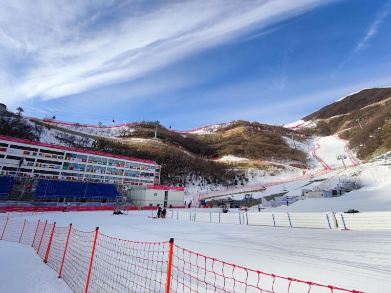 國(guó)家高山滑雪中心競(jìng)技結(jié)束區(qū)一角。新華社記者王沁鷗攝