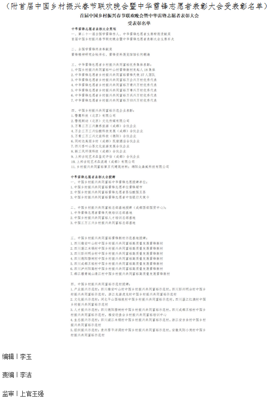 “燈火里的中國青春婀娜,燈火里的中國胸懷遼闊”。首屆中國鄉(xiāng)村振興春節(jié)聯(lián)歡晚會暨中華雷鋒志愿者表彰大會在悠揚(yáng)的歌聲中融入對鄉(xiāng)村振興的祝愿,在歡笑與快樂中飽含社會對農(nóng)民朋友的關(guān)懷,繼承優(yōu)秀傳統(tǒng),激發(fā)時代朝氣。在鄉(xiāng)村振興征程中也加大對雷鋒精神的弘揚(yáng),分享中國三農(nóng)事業(yè)的寶貴經(jīng)驗(yàn),為加快推進(jìn)實(shí)施鄉(xiāng)村振興戰(zhàn)略提供良好借鑒和有力保障。