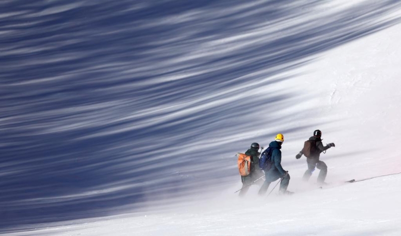 1月28日,工作人員在國家高山滑雪中心雪道上工作。 新華社記者 陳斌 攝