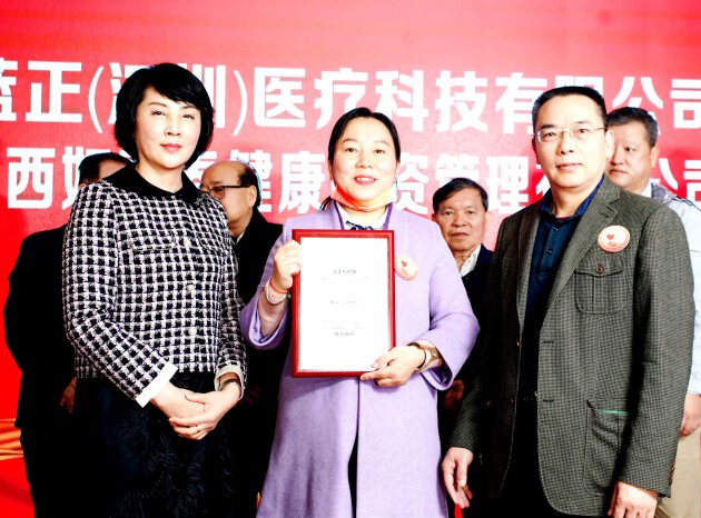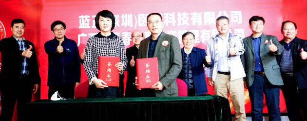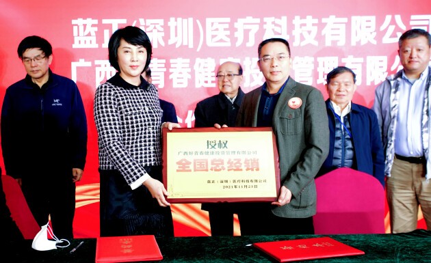 藍正(深圳)醫(yī)療科技有限公司董事長宋麗杰與廣西好青春健康投資管理有限公司總經(jīng)理陳作軍舉行合作簽約