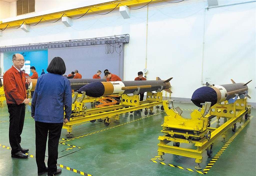 蔡英文曾親自前往“中科院”參觀天弓導(dǎo)彈生產(chǎn)情形。(中時(shí)數(shù)據(jù)庫)