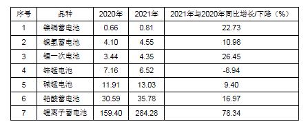 2021年中國主要電池品種出口總量為350.50億只,2020年出口量為336.94億只,同比上漲4.02%。