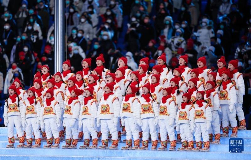 2月4日晚,第二十四屆冬季奧林匹克運(yùn)動(dòng)會(huì)開幕式在北京國家體育場舉行。這是“馬蘭花兒童合唱團(tuán)”用希臘語在開幕式上歌唱。新華社記者 曹燦 攝