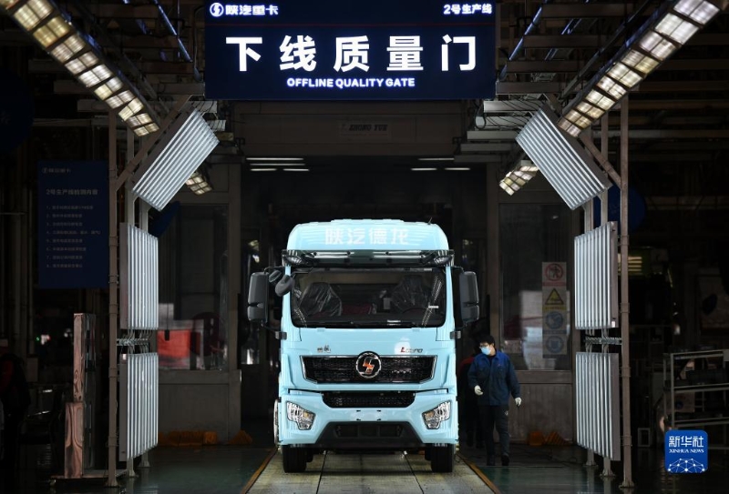 1月20日,工作人員在陜西汽車控股集團(tuán)有限公司總裝車間驗(yàn)收一輛裝配完畢的重型卡車。新華社記者 李一博 攝