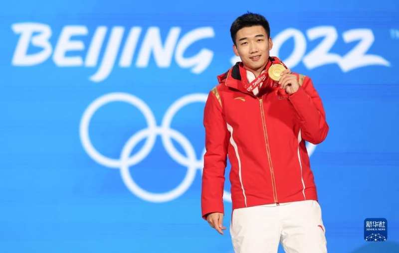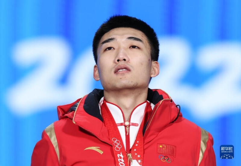 2月12日,冠軍中國選手高亭宇在獎牌頒發(fā)儀式上。
