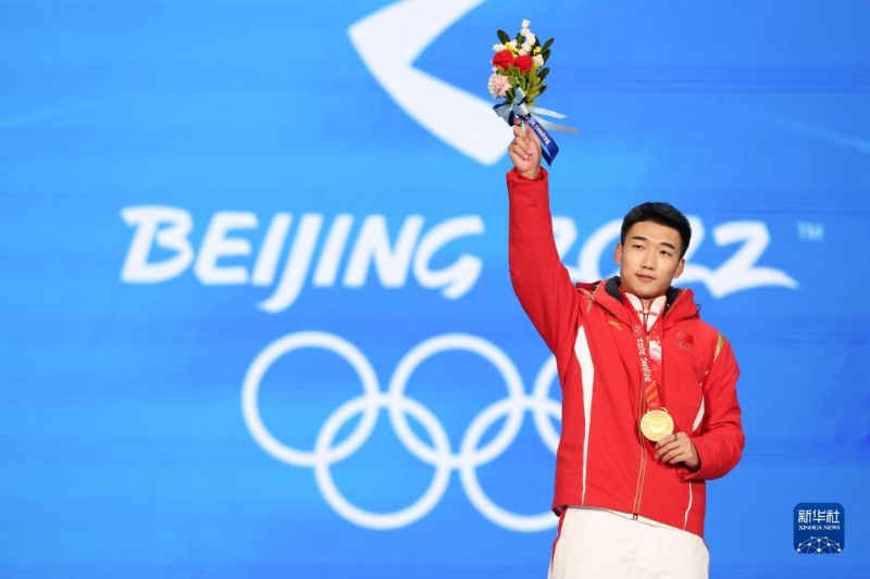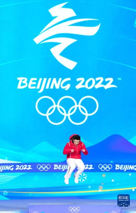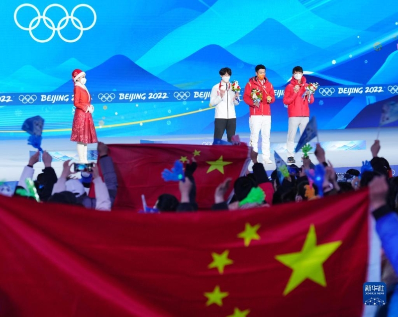 當(dāng)日,北京2022年冬奧會速度滑冰男子500米獎牌頒發(fā)儀式在北京賽區(qū)頒獎廣場舉行。