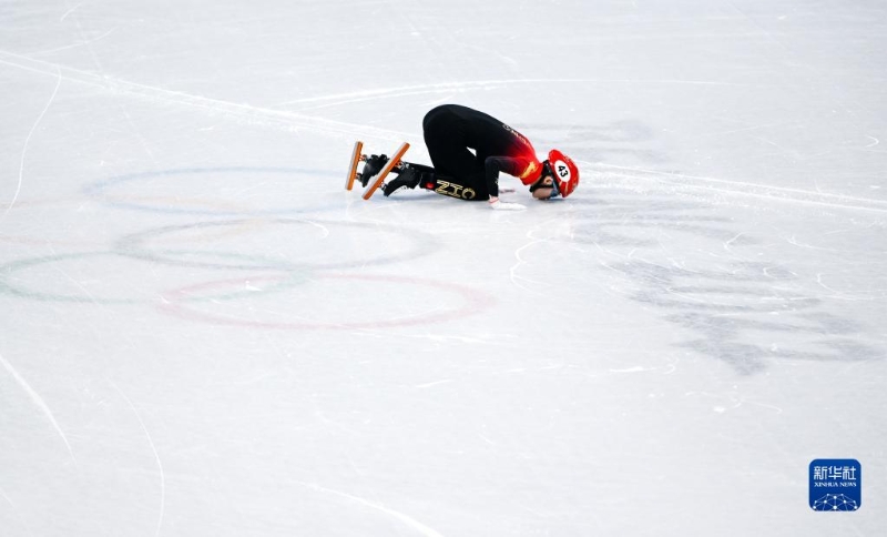 2月13日,中國隊選手范可新在比賽后親吻冰面。