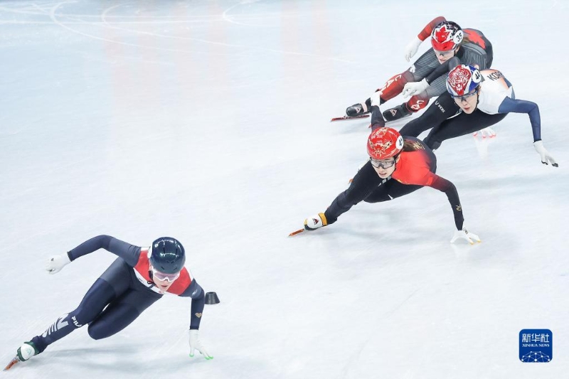 2月13日,中國隊選手范可新(下右三)在比賽中沖線。