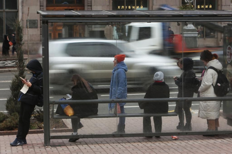 2月10日,市民在烏克蘭基輔一處公交站等車。新華社發(fā)(謝爾蓋·斯塔拉斯堅科攝)