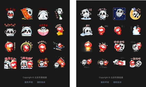 微信等平臺(tái)上已廣泛應(yīng)用的吉祥物表情包是北京冬奧組委形象景觀核心團(tuán)隊(duì)的創(chuàng)新性創(chuàng)作,共分三期上線公布,設(shè)計(jì)廣泛結(jié)合中國(guó)民俗、年俗,生動(dòng)活潑。表情包系列經(jīng)國(guó)內(nèi)外多個(gè)網(wǎng)絡(luò)平臺(tái)有效傳播,受到廣泛喜愛(ài)。