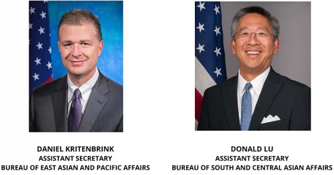 美國(guó)負(fù)責(zé)東亞事務(wù)助理國(guó)務(wù)卿康達(dá)(左)稱“美國(guó)的一中政策”未變