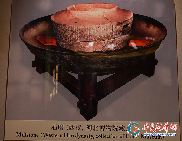 石磨是糧食加工工具,在我國(guó)最早出現(xiàn)于秦代,到西漢時(shí)已普遍推廣至南北各地,東漢時(shí)期作為明器模型在墓中出現(xiàn)較多。這類(lèi)明器的組合往往是倉(cāng)、灶、廁、磨、樓及家禽家畜等,對(duì)了解當(dāng)時(shí)的社會(huì)生活具有重要意義。