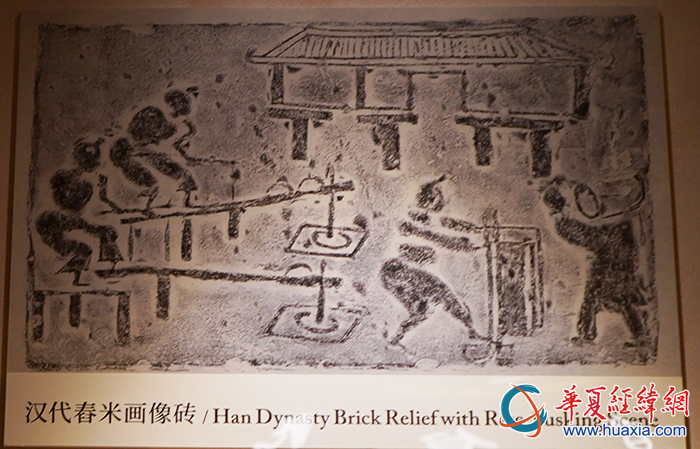 碓是給谷物脫皮的工具,大約發(fā)明于西漢時(shí)期。其工作原理與杵臼相近,只是用足踏代替了手杵,不僅省力,而且工作效率也得到了大幅提高。因?yàn)槭怯米闾?,所以這種碓又名踐碓。