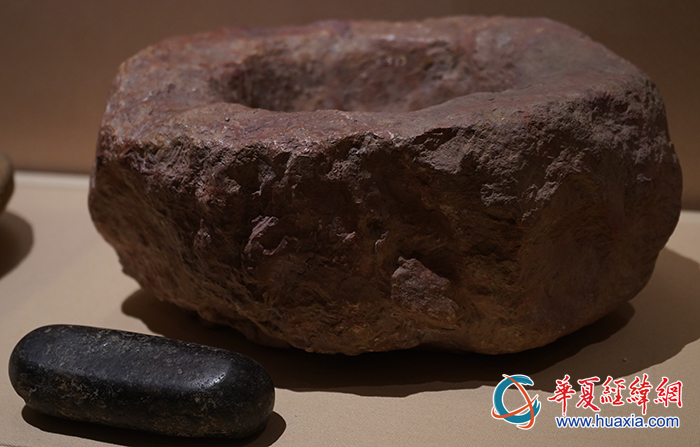 石磨盤(pán)、石磨棒是谷物加工工具,可使谷物脫殼或粉碎,也用于加工、碾碎堅(jiān)果,一器多用。谷物的果實(shí)多有硬殼,無(wú)法直接食用,一般得經(jīng)過(guò)脫粒除殼等加工步驟才能使其變成能烹煮的“粒食”。