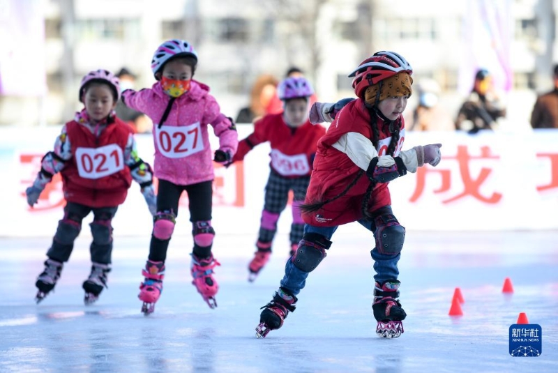 1月15日,小選手們在200米比賽中。當(dāng)日,“喜迎冬奧 快樂運(yùn)動(dòng)”2022年寧夏銀川市第四屆青少年冬季冰雪運(yùn)動(dòng)會(huì)在湖濱體育場冰場舉行。來自全市13個(gè)代表隊(duì)的110多名選手參加比賽。新華社記者 馮開華 攝