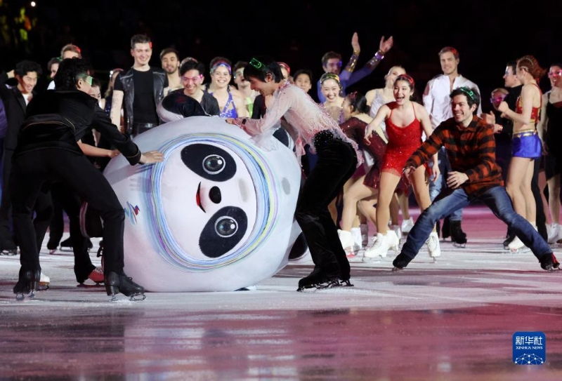 2月20日,“冰墩墩”不小心摔倒后,選手們紛紛上前幫忙。當(dāng)日,北京2022年冬奧會(huì)花樣滑冰表演滑在首都體育館舉行。新華社記者 張玉薇 攝