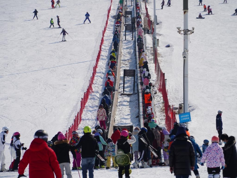2022年2月17日,在沈陽怪坡國(guó)際滑雪場(chǎng),非雙休日時(shí)游客也很多。新華社記者 崔師豪攝