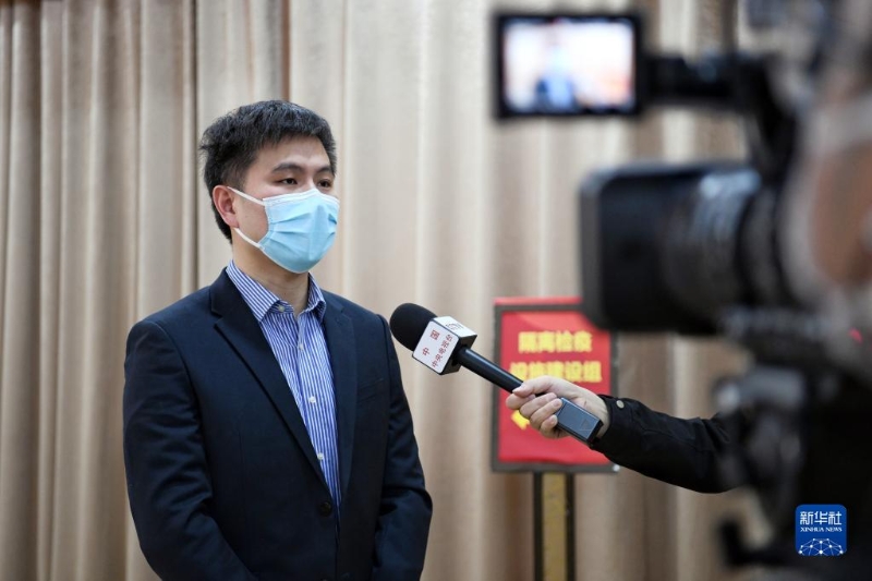 2月22日,內(nèi)地支援香港抗疫工作專班隔離檢疫設(shè)施建設(shè)組成員謝暉接受媒體采訪,介紹相關(guān)情況。新華社記者 梁旭 攝
