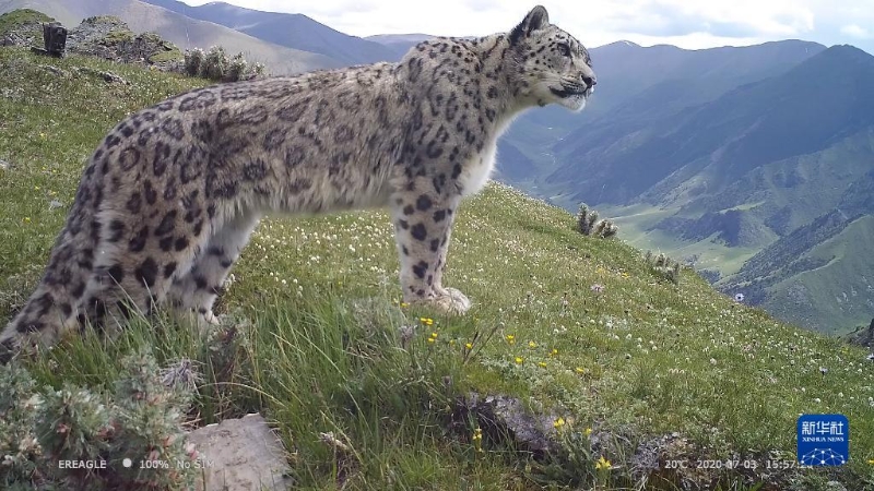 這是三江源國家公園內紅外相機捕捉到的雪豹(2020年7月3日攝)。新華社發(fā)(三江源國家公園管理局供圖)