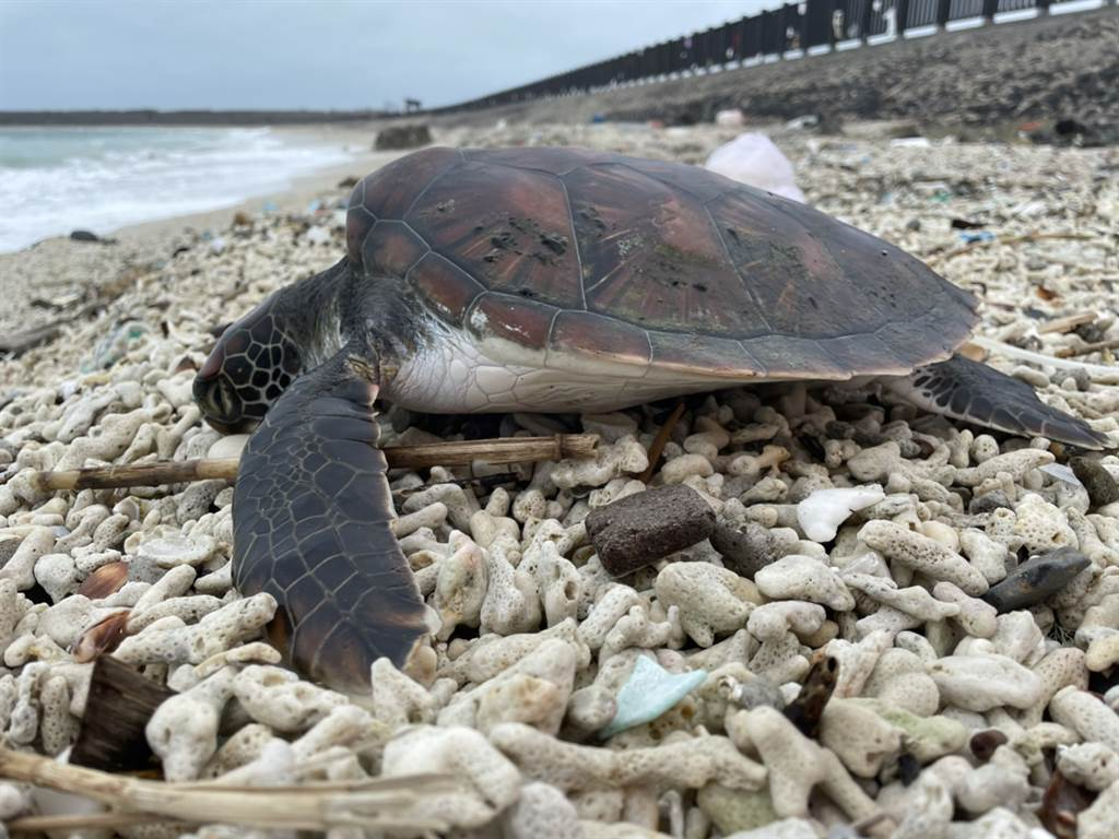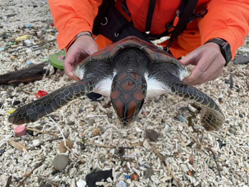 澎湖爆冷海龜也“凍”抹條,紛爬上岸取暖受困,海巡急救援。(臺海巡部門提供)
