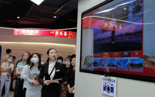 南沙環(huán)球中心物業(yè)人員為參觀人員講黨史