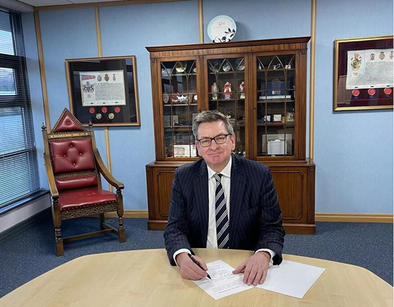 英國國際會計師公會AIA總裁菲利普特恩布爾(PhilipTurnbull)在協(xié)議書上簽字