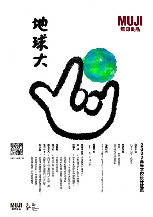 MUJI無印良品中國聯合北京當代藝術基金會(BCAF),正式發(fā)起“地球大”2022高等學校設計征集(以下簡稱“地球大”)。面向中國大陸地區(qū)的高等院校在校生,征集以“地球大”為主題且與生活(衣食住行等)相關的設計作品,以此呼吁大家為營造“人與自然的良好關系”做出努力。