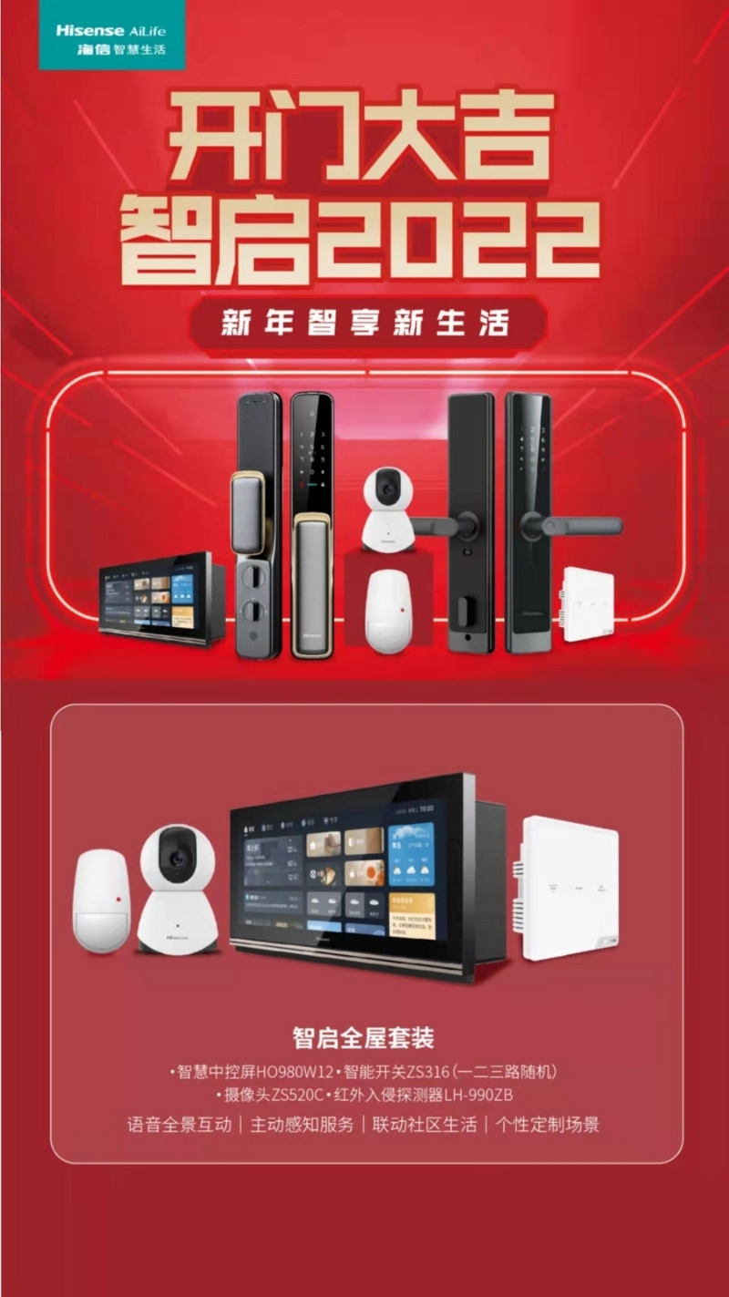 據(jù)了解,“開門大吉 智啟2022”活動(dòng)是海信全品類面向終端消費(fèi)者的新年首銷舉措,海信智慧生再次釋放了其智能家居產(chǎn)品強(qiáng)大的實(shí)力,推出了智能門鎖系列產(chǎn)品及智啟全屋套餐。其中,智啟全屋套餐是以智能中控屏HO980W12為核心,搭配各類智能控制終端的家居類產(chǎn)品套裝,為用戶快速體驗(yàn)家庭智能化提供了可能。