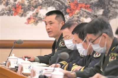 3月6日,解放軍和武警部隊(duì)代表團(tuán)進(jìn)行分組審議。圖為代表在參加審議時(shí)發(fā)言。