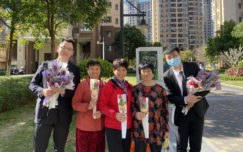 增城國際花園客服人員為女業(yè)主送上鮮花