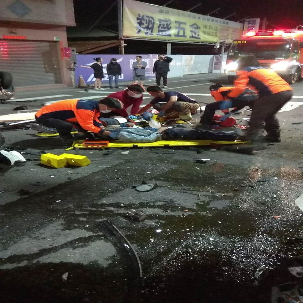 臺南市消防局昨日深夜11時16分獲報,善化區(qū)興農(nóng)路、烏橋中路口發(fā)生2車車禍,派遣1輛救助器材車、3輛救護(hù)車趕往救援。