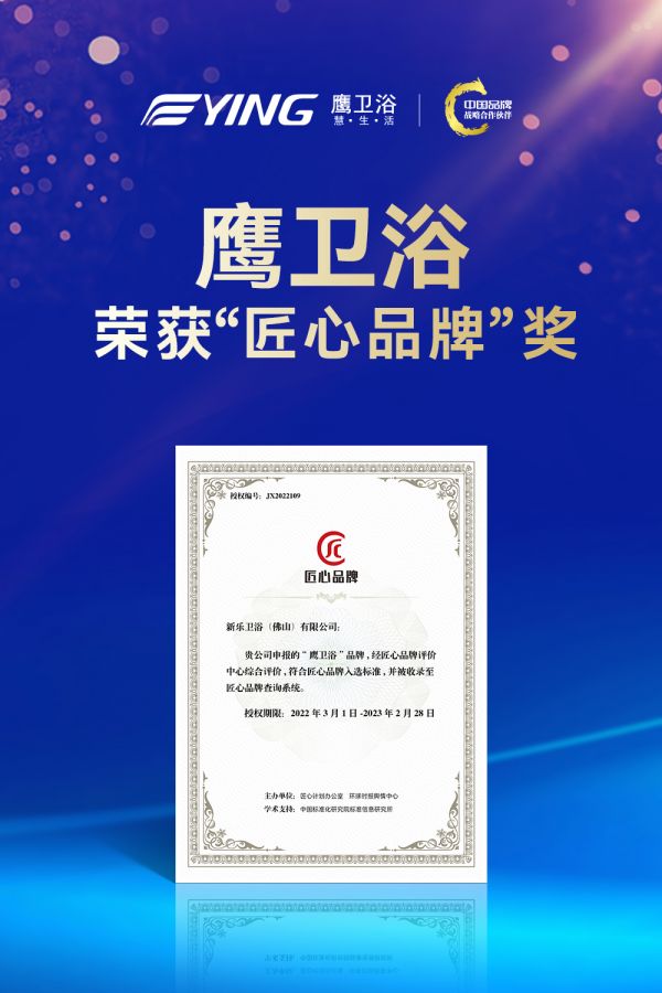 2022年3月,鷹衛(wèi)浴作為衛(wèi)浴行業(yè)引先品牌,憑借銳意進取、勇于改變、探索不止的創(chuàng)新精神,從近300多個品牌中脫穎而出,共同榮膺“2021年匠心品牌”,這正是社會、消費者、行業(yè)對鷹衛(wèi)浴品牌、品質(zhì)及企業(yè)實力的又一次肯定,同期入選的還有華為等品牌。