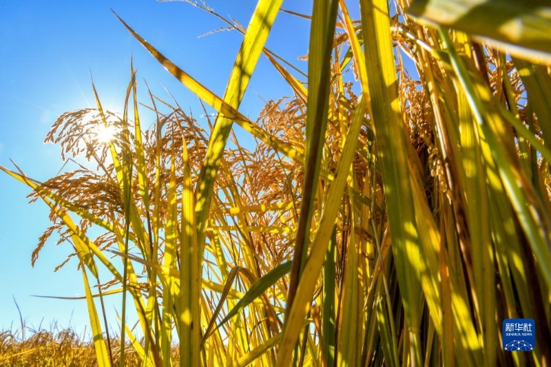 這是2021年10月12日在吉林省吉林市永吉縣萬(wàn)昌鎮(zhèn)拍攝的水稻。新華社記者 張楠 攝