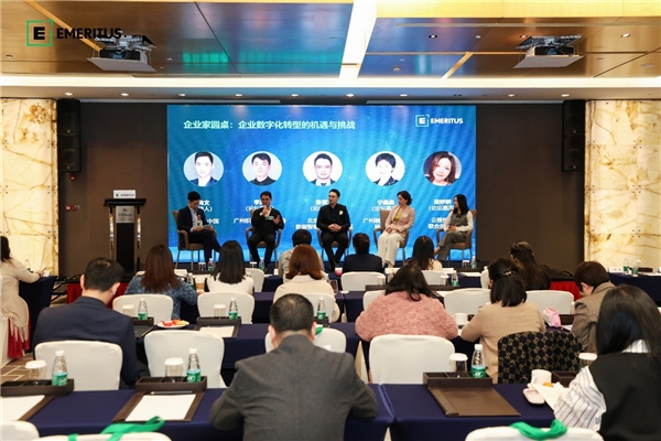在第二場(chǎng)企業(yè)家圓桌論壇中,Emeritus中國CEO熊尚文以《企業(yè)數(shù)字化轉(zhuǎn)型的機(jī)遇與挑戰(zhàn)》為題,與廣州織田數(shù)字化咨詢創(chuàng)始人李濤、北京元年科技數(shù)據(jù)智能解決方案總監(jiān)張景文、廣州融山信息科技副總經(jīng)理寧晶晶和云橙控股深圳有限公司聯(lián)合創(chuàng)始人梁妙拼4位校友代表,分享各自行業(yè)里企業(yè)數(shù)字化轉(zhuǎn)型的機(jī)遇與挑戰(zhàn)。
