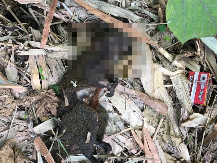 臺電基隆區(qū)初步研判,遭鳥獸碰觸所致,現(xiàn)場有一只受傷、焦黑的松鼠倒在草叢中。(臺電提供/陳彩玲基隆傳真)