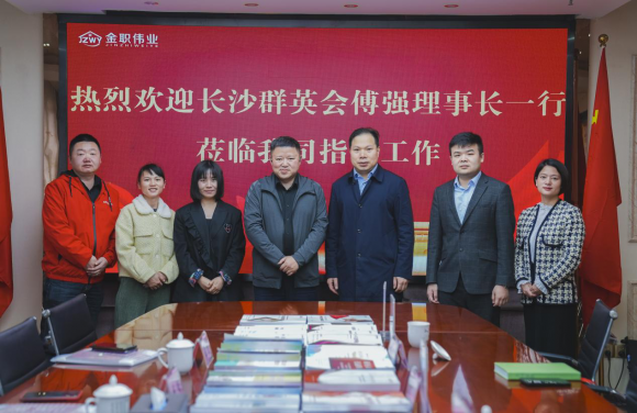 3月17日上午,長沙群英會理事長傅強(qiáng)一行蒞臨金職偉業(yè)參觀考察,金職偉業(yè)總經(jīng)理潘建明、總經(jīng)理助理湯曌宇、招商事業(yè)部市場經(jīng)理顏明娟等陪同接待,雙方就如何發(fā)揮自身優(yōu)勢,踐行公益初心,賦能行業(yè)發(fā)展進(jìn)行了深入交流與探討。