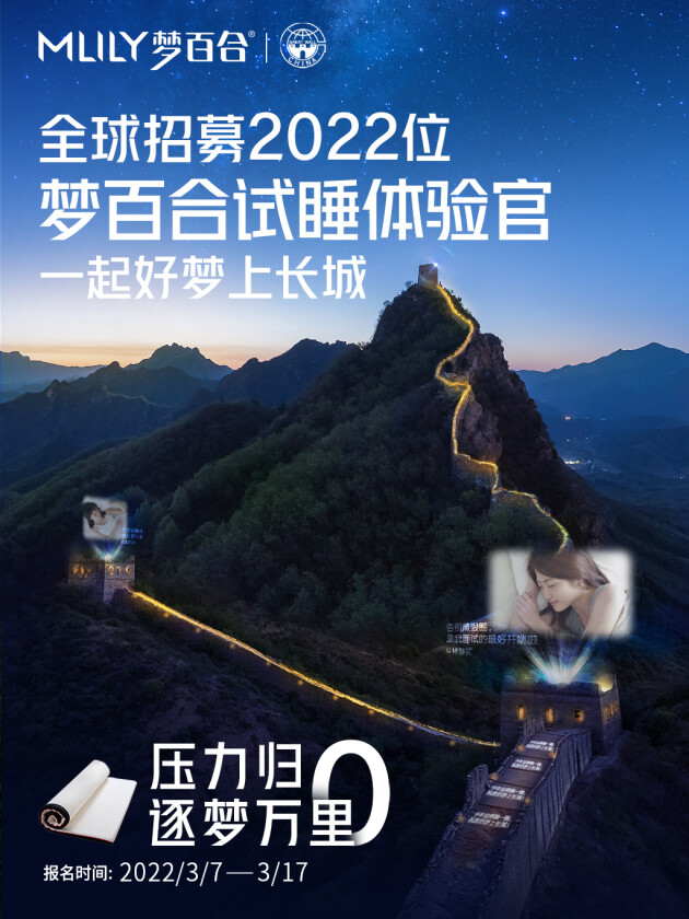 面對(duì)國(guó)民級(jí)的睡眠健康難題,2022年3月,夢(mèng)百合聯(lián)手長(zhǎng)城IP共同打造第六季321全民試睡節(jié),實(shí)力推動(dòng)0壓理念出圈,讓0壓睡眠成為更多人解決睡眠難題的答案。