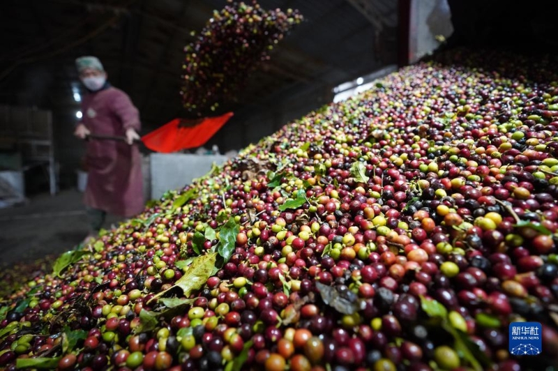 這是2月22日在云南普洱市一家咖啡生產(chǎn)企業(yè)內(nèi)拍攝的新收購并準(zhǔn)備進行處理的咖啡鮮果。新華社記者 陳欣波 攝