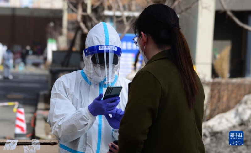 3月24日,在長春市南關(guān)區(qū)一處核酸檢測點,居民掃碼登記信息。新華社記者 張建 攝