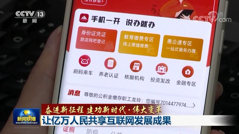 央視網(wǎng)消息(新聞聯(lián)播):習(xí)近平總書記強(qiáng)調(diào),網(wǎng)信事業(yè)要發(fā)展,必須貫徹以人民為中心的發(fā)展思想,要適應(yīng)人民期待和需求,讓億萬人民在共享互聯(lián)網(wǎng)發(fā)展成果上有更多獲得感。黨的十八大以來,我國網(wǎng)信事業(yè)取得了歷史性成就,人們的生產(chǎn)與生活方式發(fā)生了深刻改變。