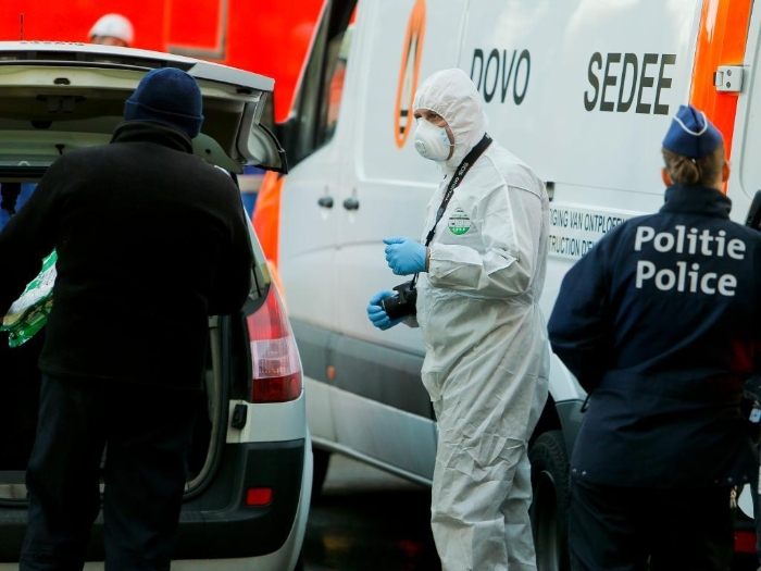 2015年11月26日,醫(yī)護(hù)人員在比利時(shí)首都布魯塞爾的大清真寺外工作。布魯塞爾大清真寺內(nèi)26日發(fā)現(xiàn)裝有白色粉末的可疑包裹。警方疏散了大清真寺內(nèi)的人員,工作人員攜帶檢測(cè)炭疽桿菌的設(shè)備到場(chǎng)調(diào)查。(新華社記者周磊攝)