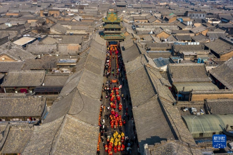 這是2月8日拍攝的平遙古城一角(無人機(jī)照片)。新華社記者 曹陽(yáng) 攝
