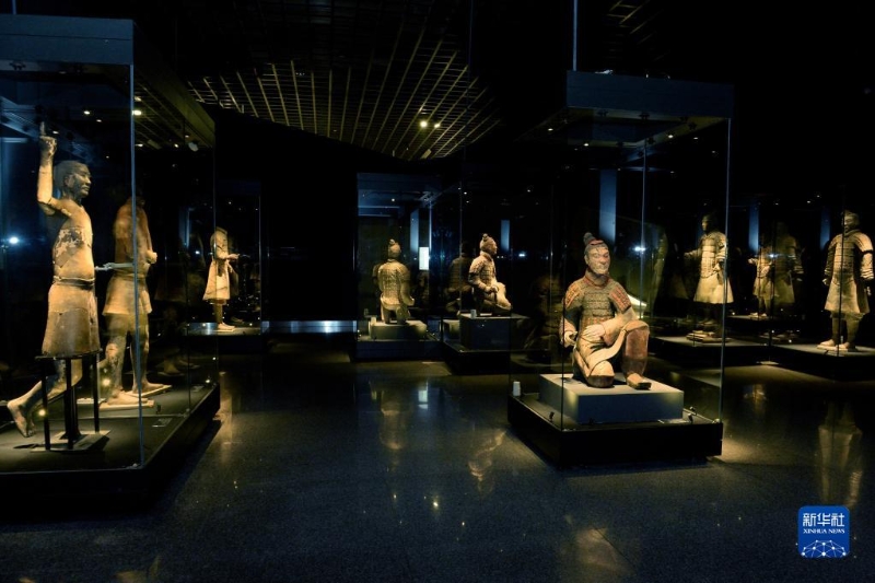 西安秦始皇帝陵博物院舉辦的“真彩秦俑”展覽現(xiàn)場(chǎng)(2014年11月21日攝)。新華社發(fā)(張?zhí)熘?攝)