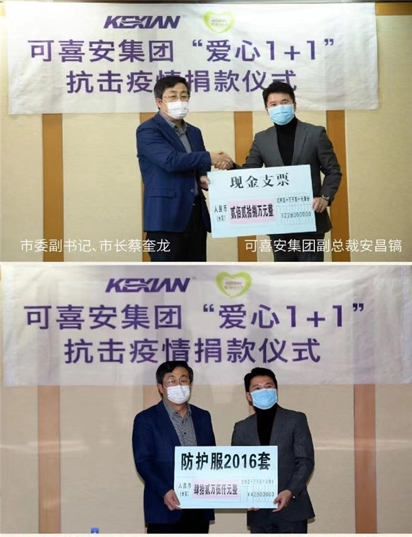 在樸杰董事長(zhǎng)的帶領(lǐng)下,可喜安上下同心,集團(tuán)全體員工及全國(guó)可喜安事業(yè)者積極行動(dòng)起來,自發(fā)捐款共計(jì)2,591,030元,其中樸杰董事長(zhǎng)個(gè)人捐款100萬元。