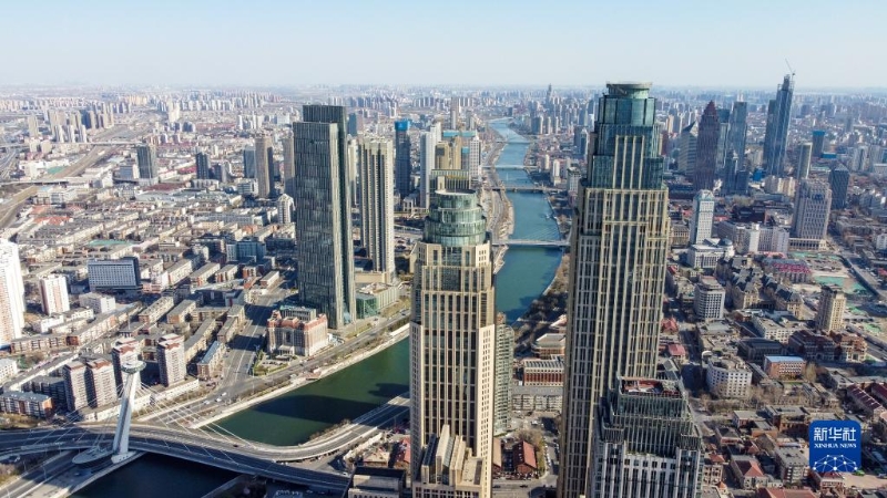 這是3月27日拍攝的天津海河上的多座橋梁(無人機照片)。