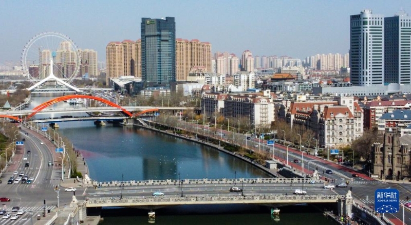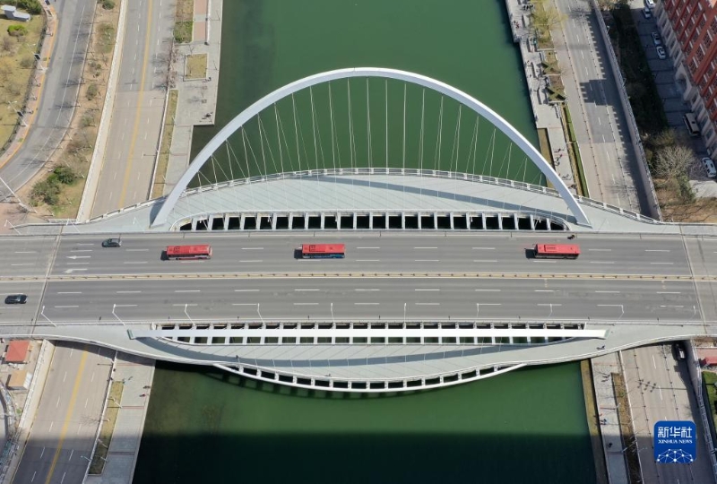 3月26日拍攝的天津大沽橋(無人機照片)。