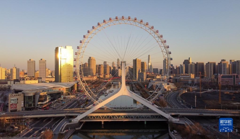 3月27日拍攝的天津永樂橋(無人機照片)。